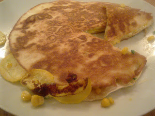 The next recipe was one from an Observer Food Monthly mag (only from 2009, what's two years?) for a quesadilla with courgette, chilli and cheese: